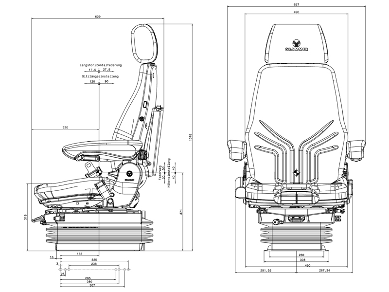 - Höheneinstellung stufenlos 80 mm luftunterstützt