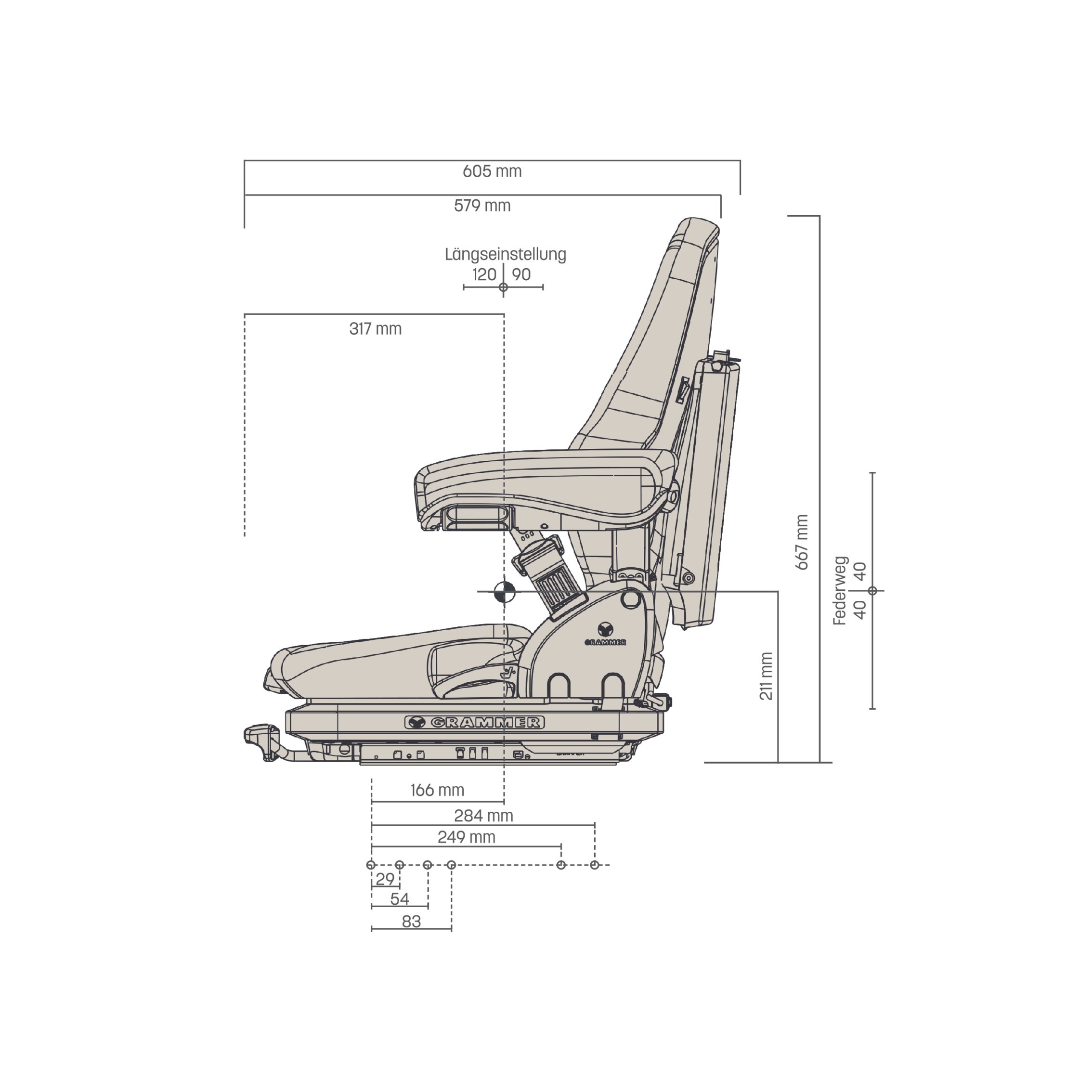 - Längsverstellung 210 mm